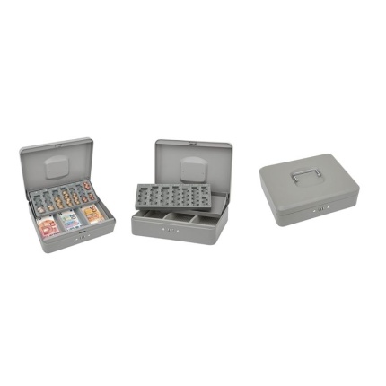 3 RUMS INDSATS TIL SEDLER MØNTBAKKE MED PLADS TIL 137,5 EURO SIKKERHEDSLÅS KAN INDSTILLES MED 3-CIFRET KODE SKAFFEVARE