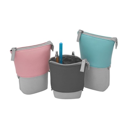 Stilfuldt og elegant penalhus med ydermateriale i kunstlæder Mål: 8 x 6 x 17 cm Kan skubbes sammen til 8 x 6 x11 cm Praktisk inddeling med små rum.