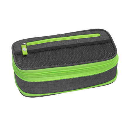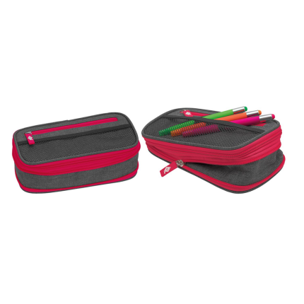 Stilfuldt og elegant penalhus med ydermateriale i kunstlæder Mål: 8 x 6 x 17 cm Kan skubbes sammen til 8 x 6 x 11 cm Praktisk inddeling med små rum.