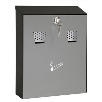 Udendørs askebæger m. udtagelig bakke "Bakken" er lavet i rustfri stål og tages ud for tømning 2 nøgler og monteringssæt til væggen medfølger
