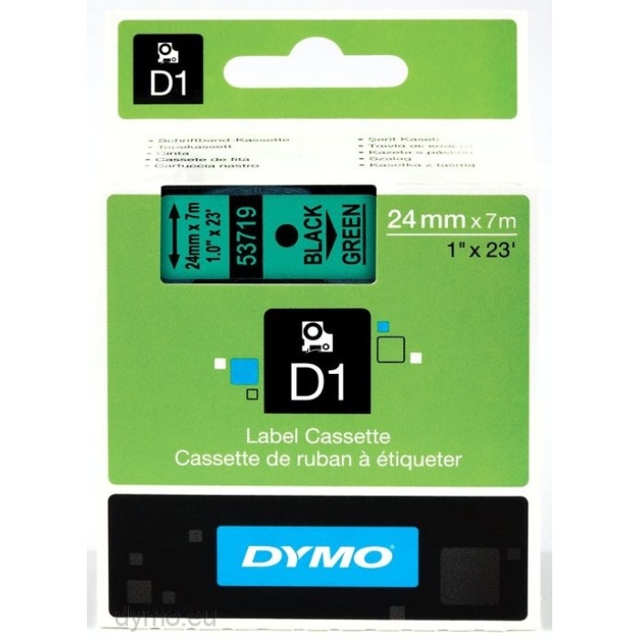 53719-DYMO D1 TAPE – 24mm – SORT/GRØN (SKAFFEVARE)