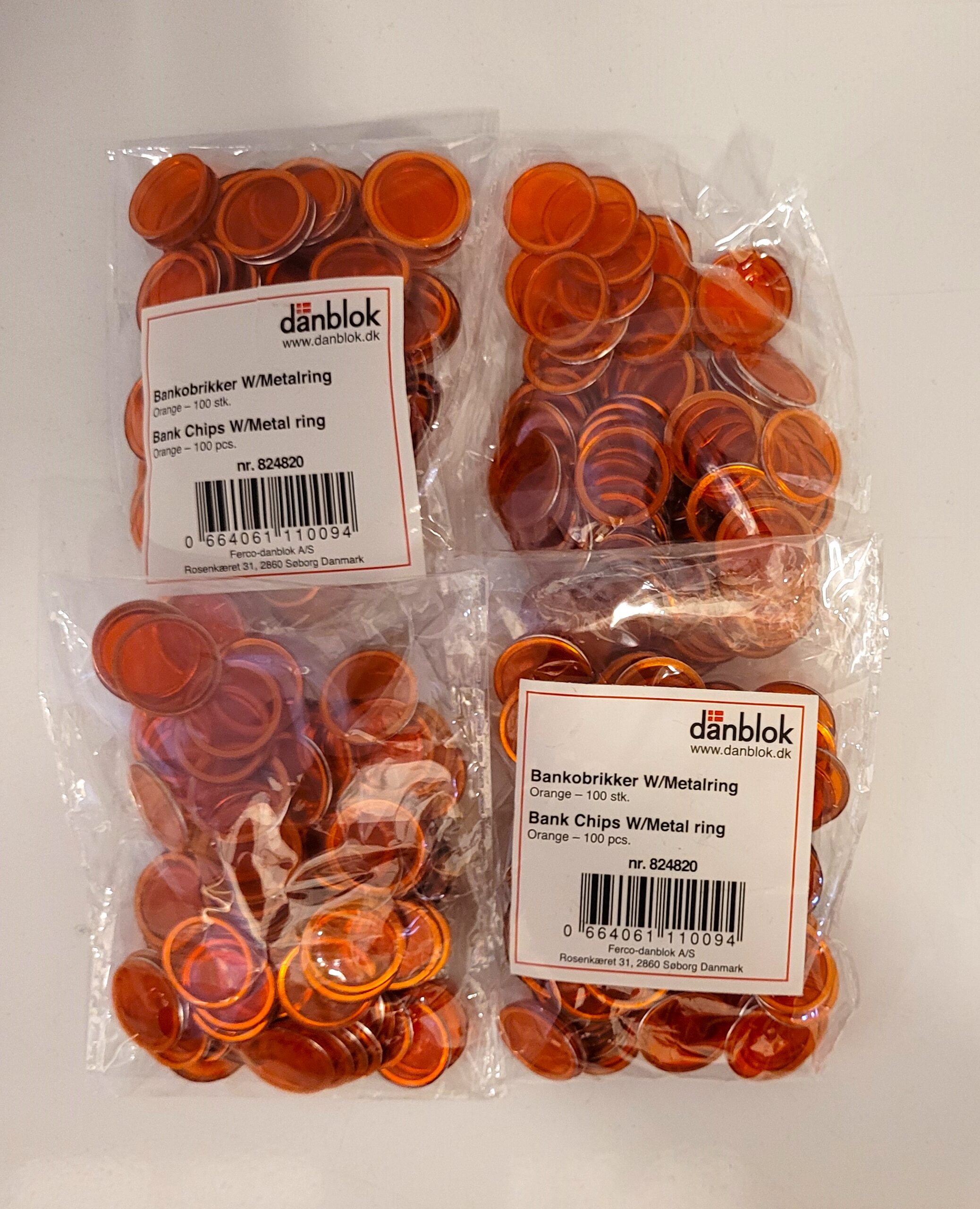 BANKOBRIKKER ORANGE CA. 100 STK PR. POSE 21,50 kr. inkl. moms