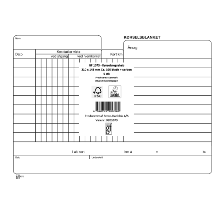 Kørselsregnskab GF1073 210X148MM CA.100 BLADE