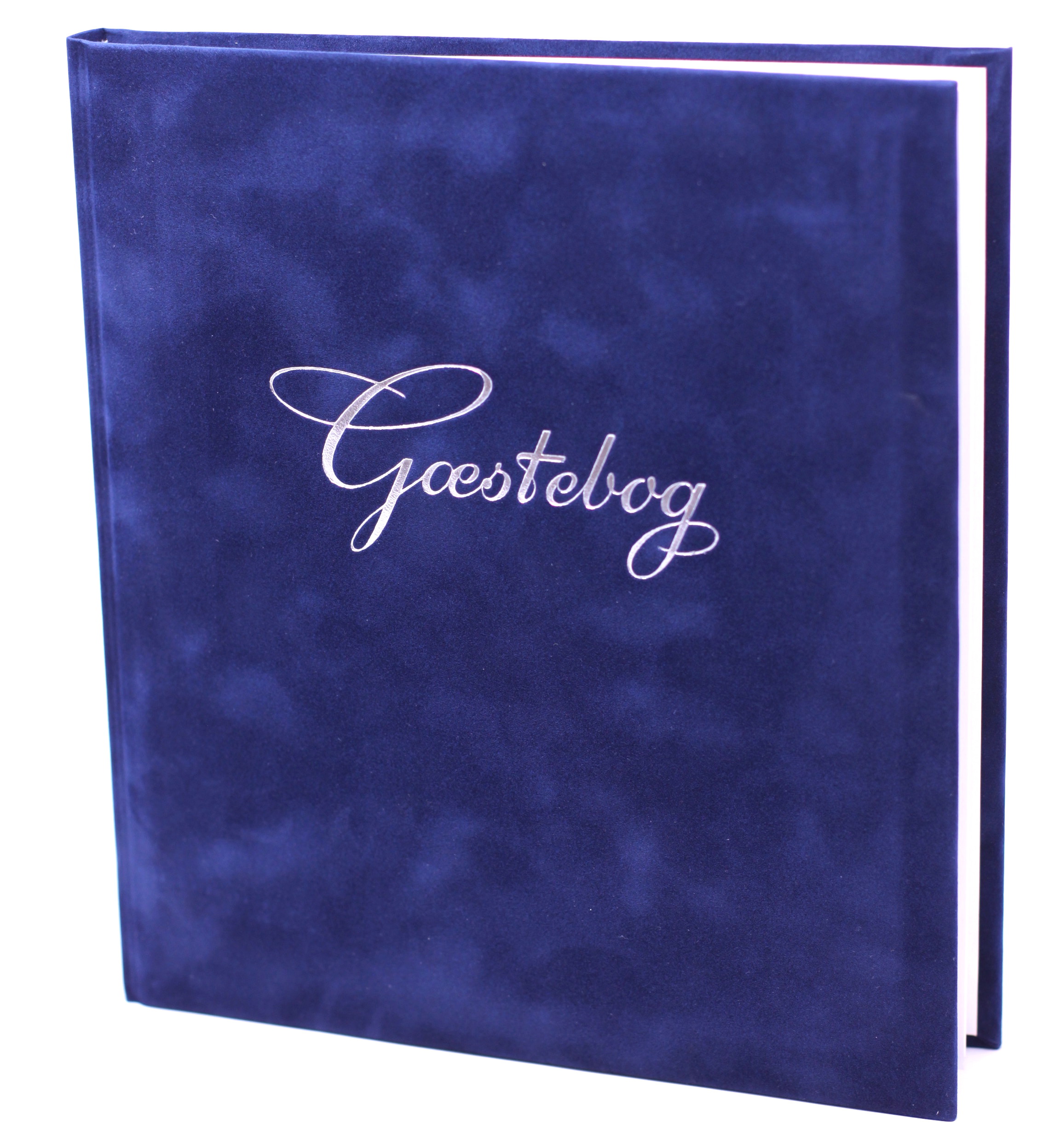 GÆSTEBOG VELOUR BLÅ M/SØLVTRYK – 23×25 CM