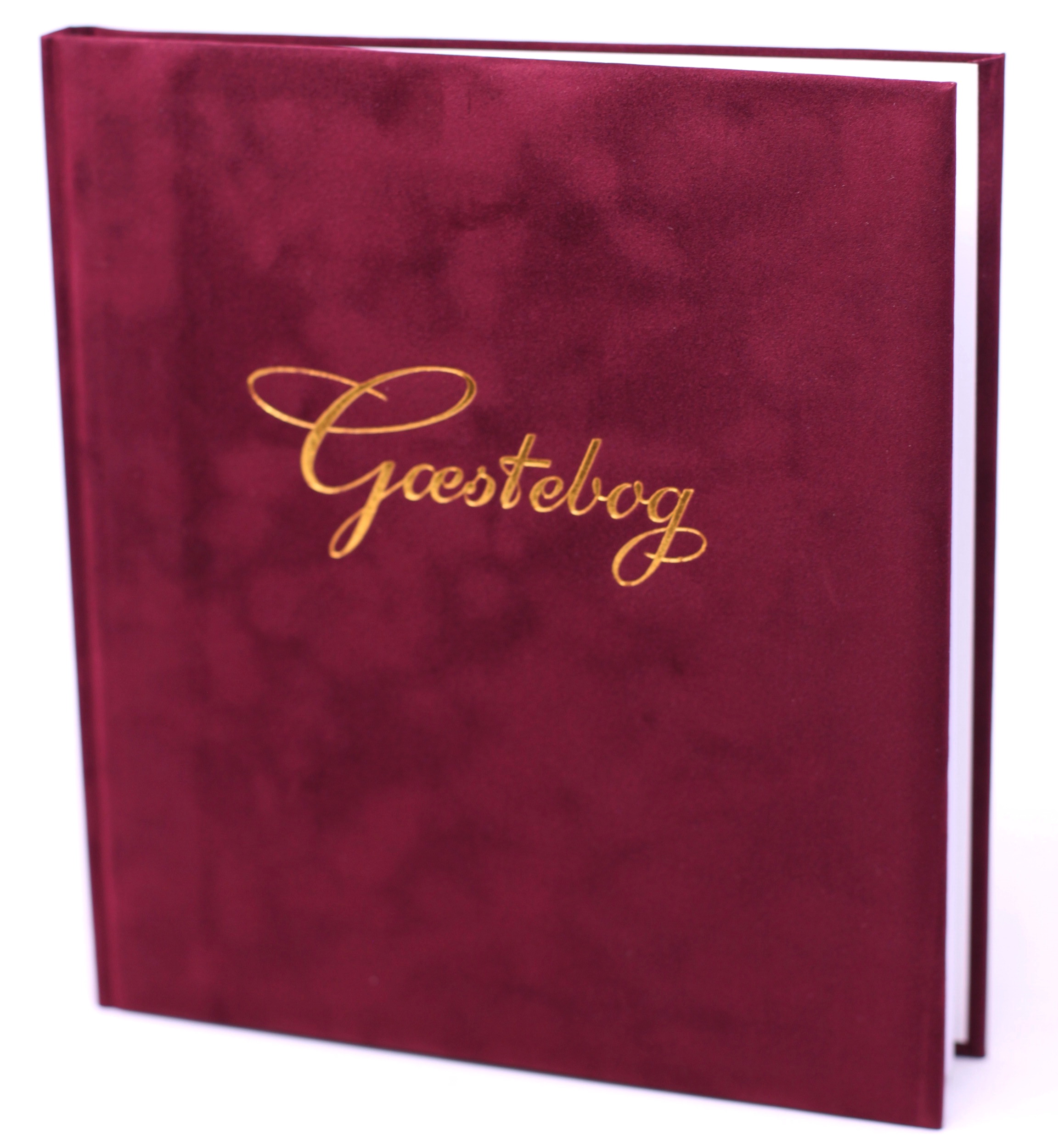 GÆSTEBOG VELOUR BORDEAUX M/GULDTRYK – 23×25 CM