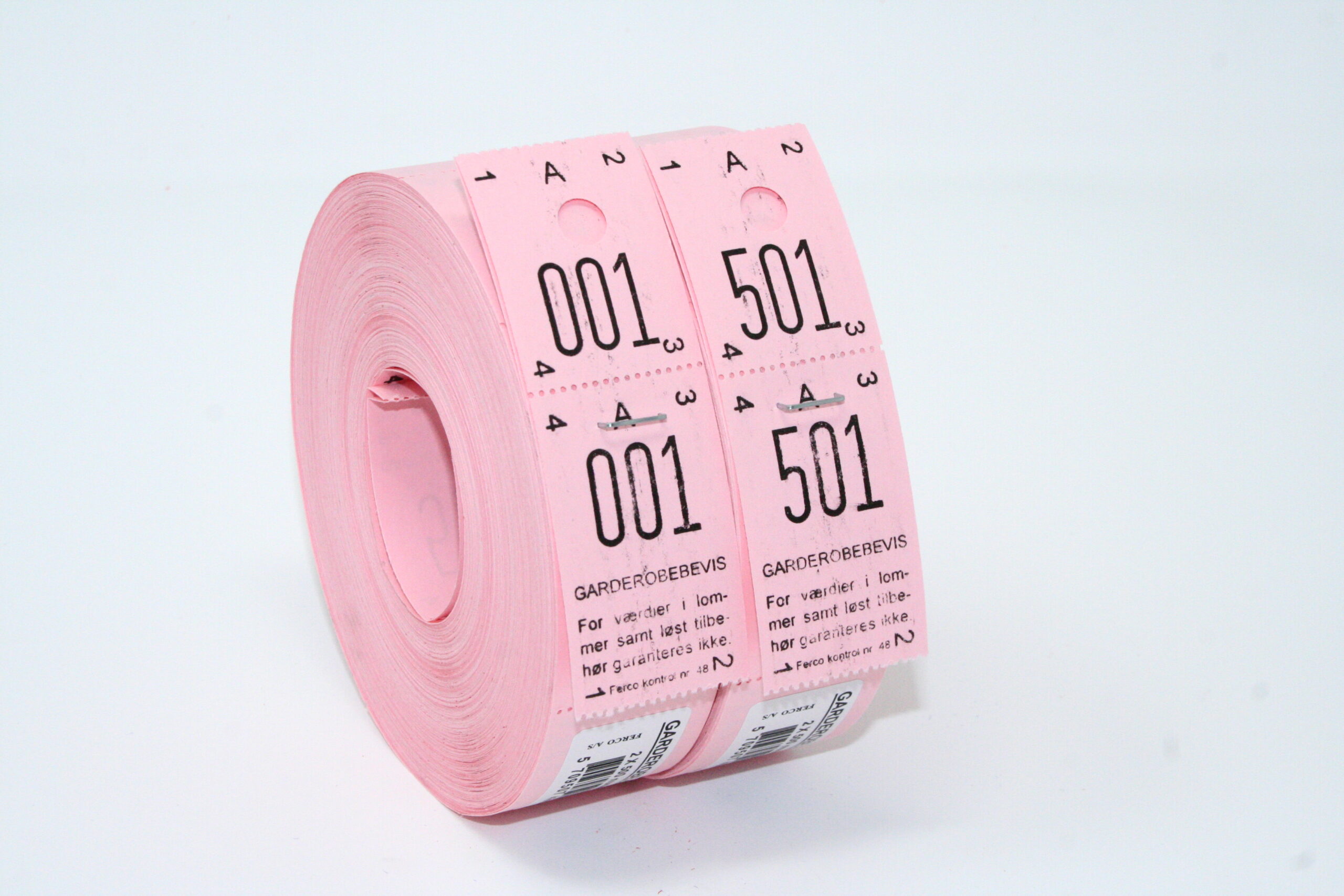 Forside Nyheder PAPIRVARER Nummerruller GARDEROBENUMRE 48 – ROSA (2×500)