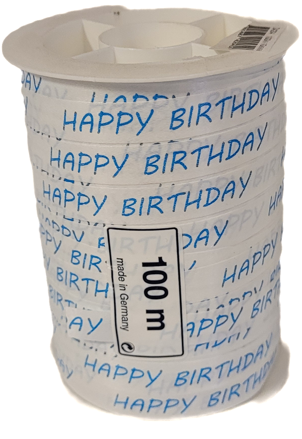GAVEBÅND HAPPY BIRTHDAY, BLÅ – 10MM X 100M.