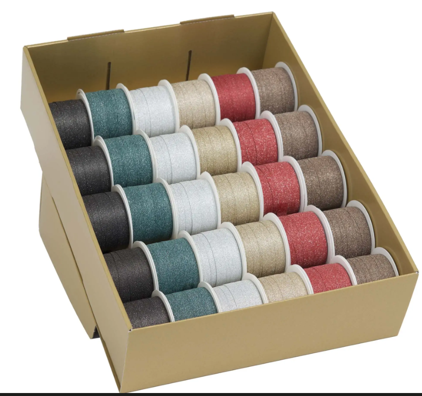 GAVEBÅND GLITTER 30 RL – 4 ASS FV. 10MM X 10M