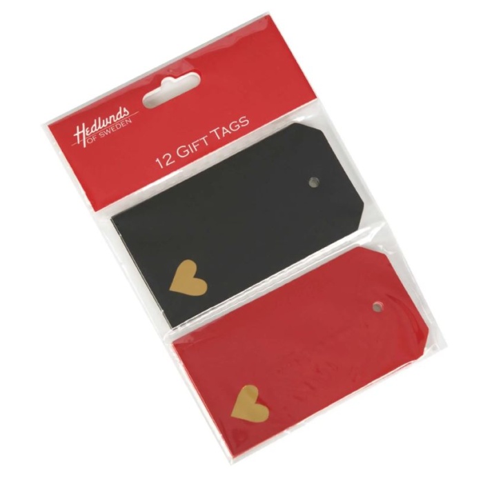 GAVEMÆRKE ” HJERTE-FOLIE” 2 DESIGNS. 12 STK PR PK