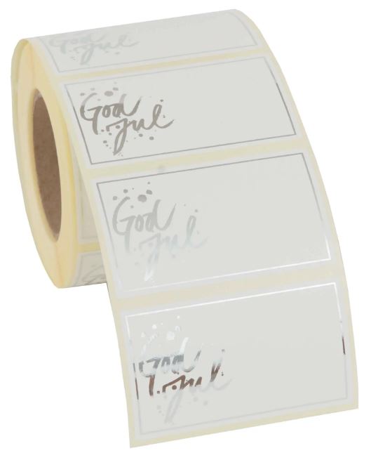 GAVEMÆRKER ” GOD JUL” SØLV FOLIE 500 STK – 60X35MM