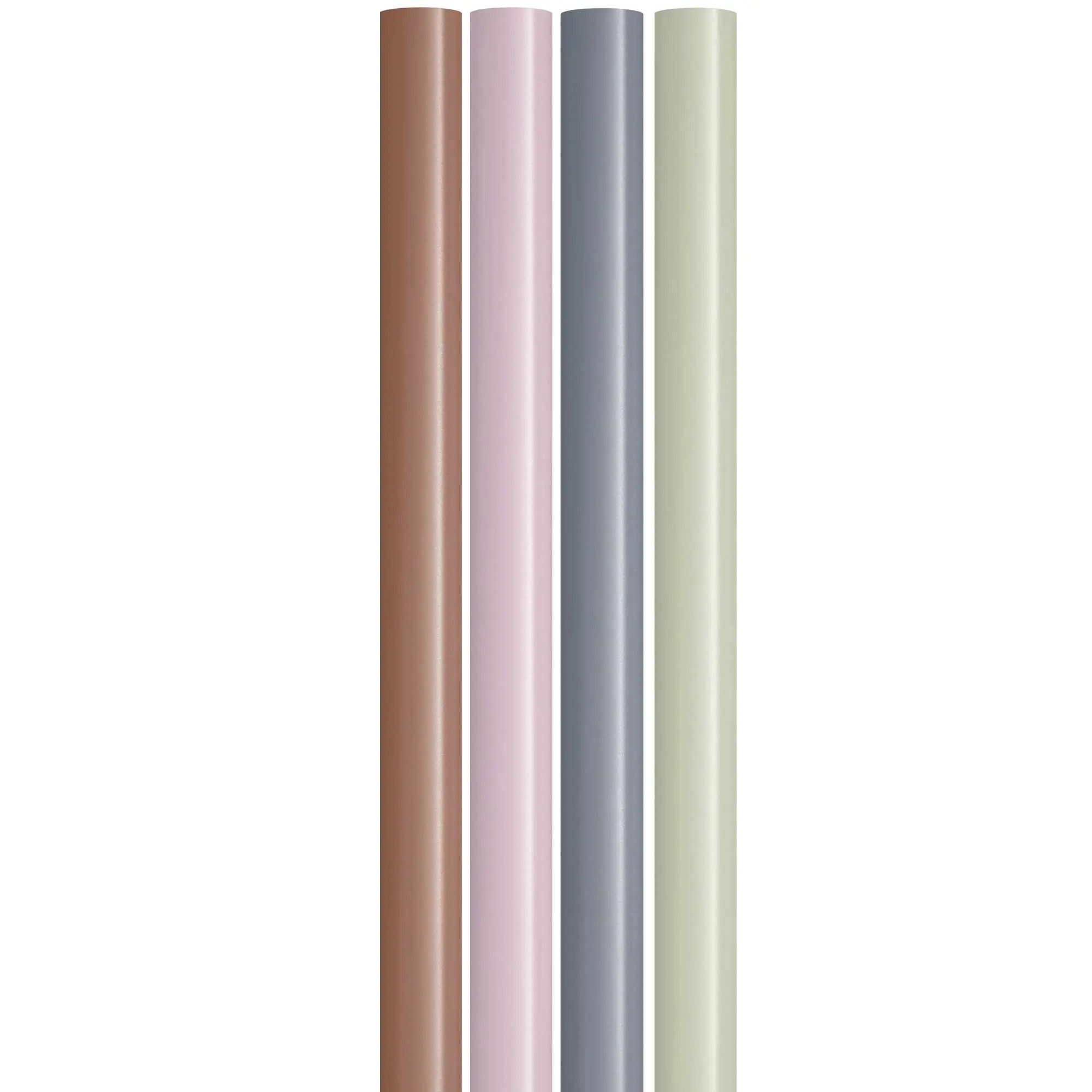 Forside Nyheder INDPAKNING & EMBALLAGE Gavepapir, bånd & tilbehør GAVEPAPIR 0,7 X 4M – 4 ASS. ENSFARVET (50 RL)