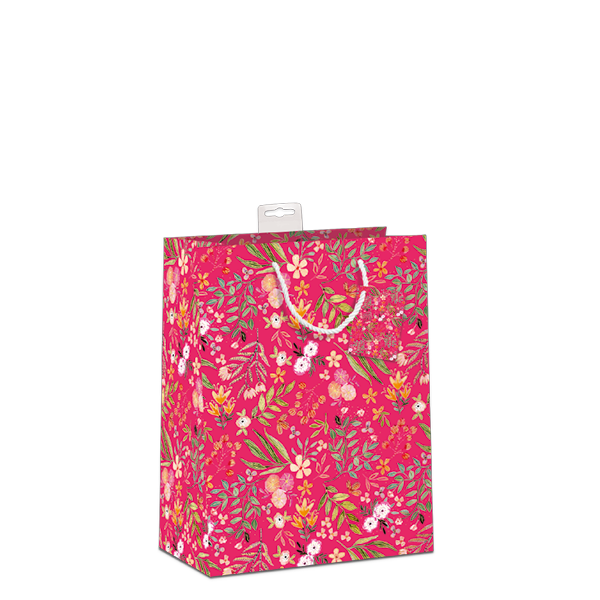 GAVEPOSE STR. M “RØD MED BLOMSTER” 23X10 CM