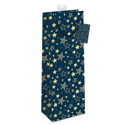 GAVEPOSE TIL FLASKE ” BLÅ MED STJERNER” GULD FOLIE – UDGÅR