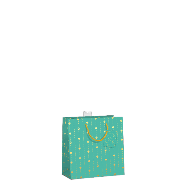 GAVEPOSE STR. SMALL 15 x 15 cm “GRØN M. SMÅ GULDHJERTER