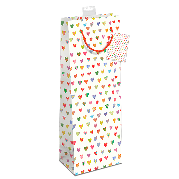 GAVEPOSE TIL FLASKE ” FARVET HJERTER”