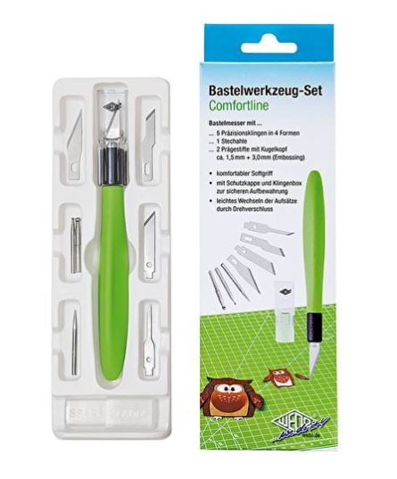 Forside Nyheder INDPAKNING & EMBALLAGE Hobbyknive & tilbehør HOBBYKNIVSÆT MED 6 BLADE (GRØN)