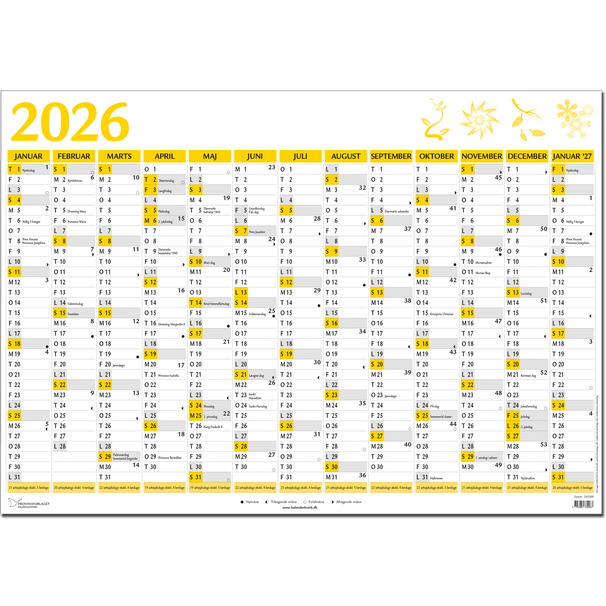 Forside Nyheder KONTORARTIKLER Kalendere KÆMPEKALENDER 13 MDR 2026 GUL 98×68,5 CM