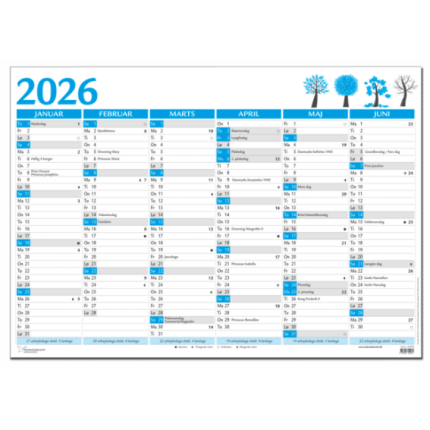 VÆGKALENDER A5 2026 – BLÅ