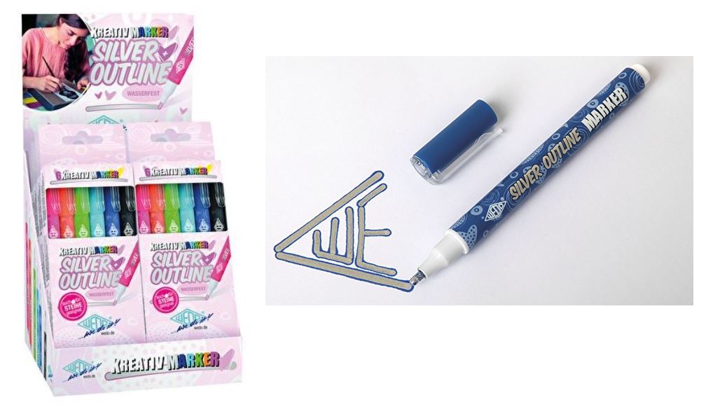 KREATIV TUSSER I SØLV M. FARVET KANT – DISPL. 8 PK