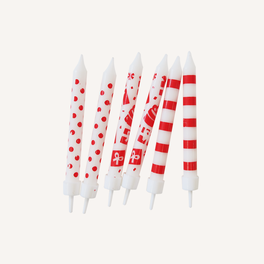 Forside Nyheder HOBBY & FRITID Party & Flag LYS TIL KAGE M/HOLDER RØD/HVID 8 CM. 12 STK PR. PK.