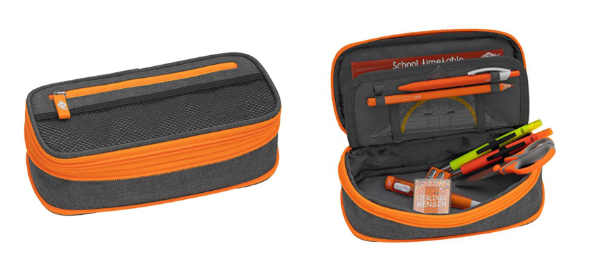 PENALHUS " NEON " - GRÅ/NEON ORANGE - 23 x 12 x 4,5 ( 8 CM )
