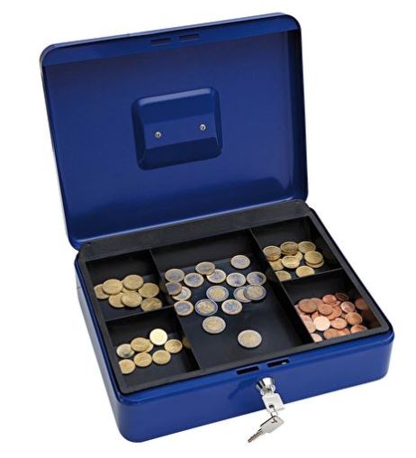 Forside Nyheder KONTORARTIKLER Pengekasser PENGEKASSE 30X24X9 BLÅ – WEDO (SKAFFEVARE)