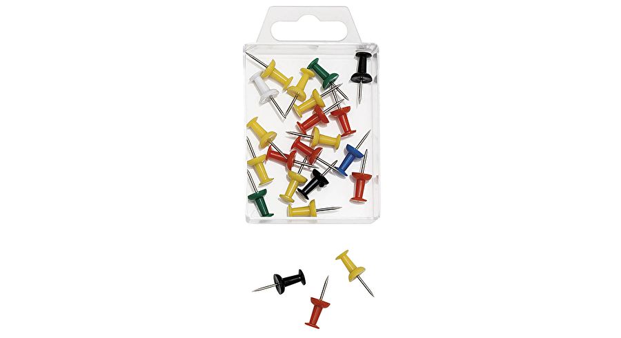 Forside Nyheder KONTORARTIKLER Kortnåle, tegnestifter & Clips PUSH-PINS I ÆSKE 20 STK ASS. FV.