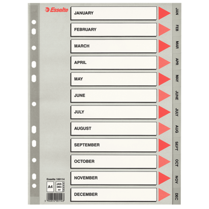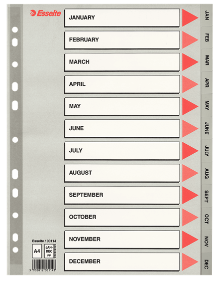 REGISTER – PLAST A4 -JAN-DEC – GRÅ (SKAFFEVARE)