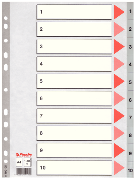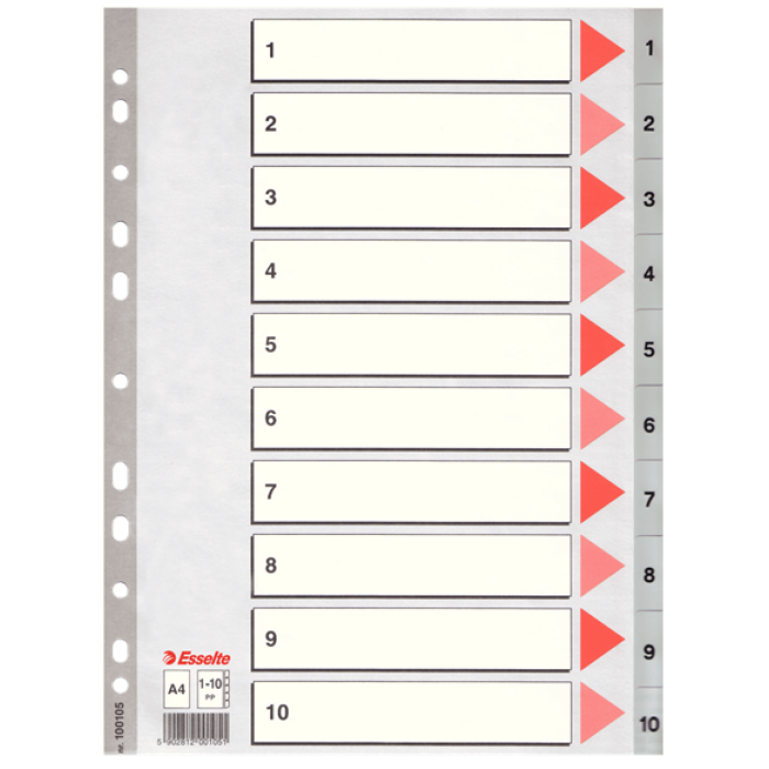 REGISTER – PLASTIC A4 – 1-10 – GRÅ