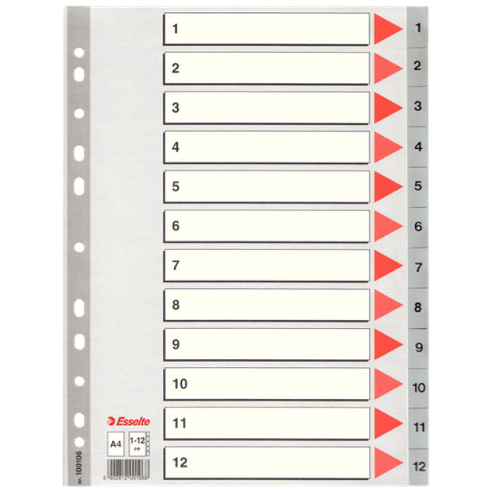 REGISTER – PLASTIC A4 – 1-12 – GRÅ