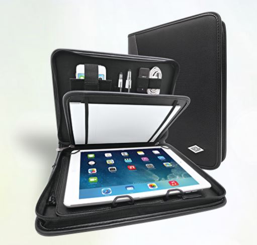 Med udtagelig tabletholder, smartphone lomme, A4 lommer til dokumenter,