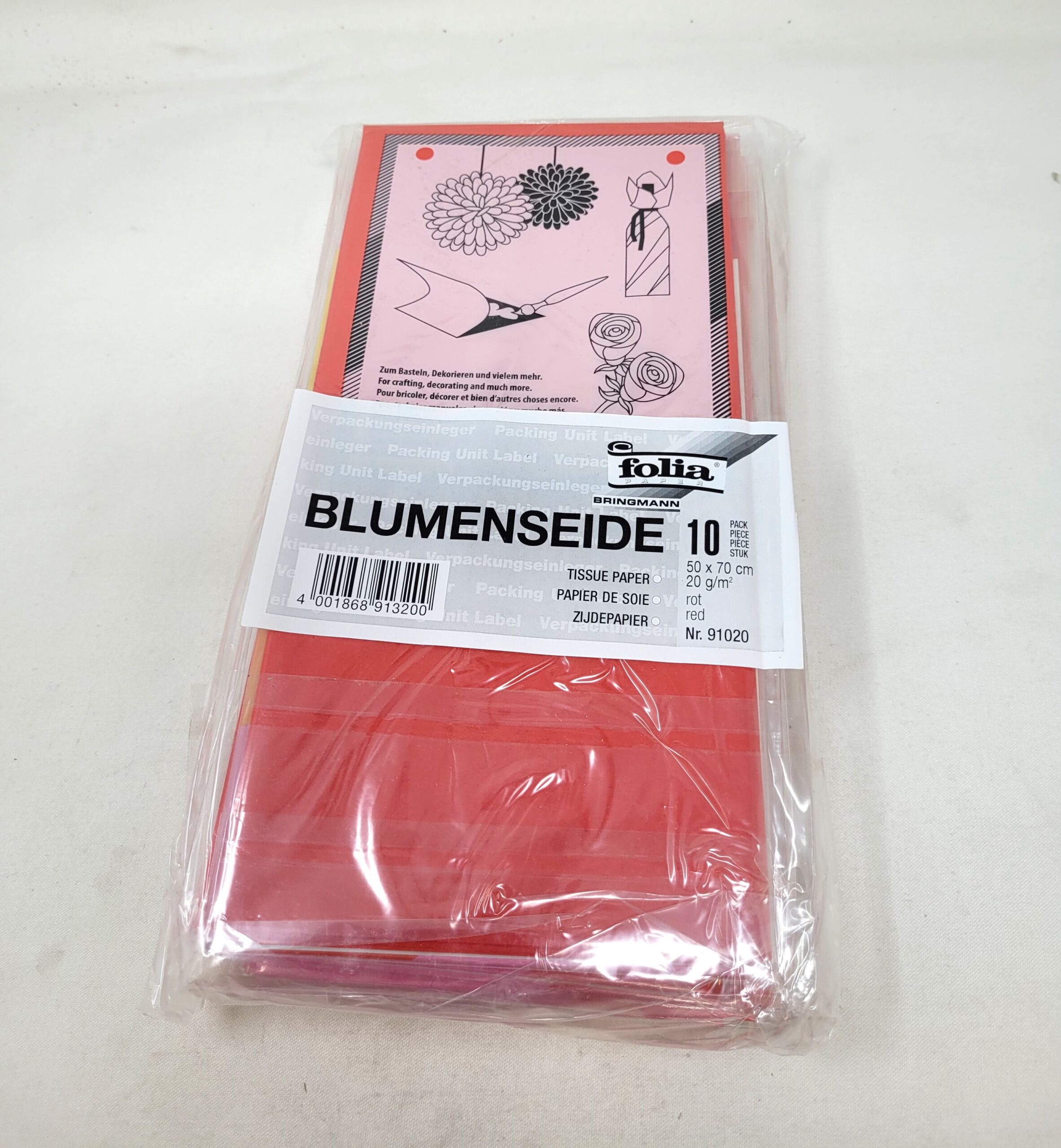 SILKEPAPIR RØD 5 ARK 50X70CM 20G. (91020)