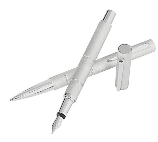 SKRIVESÆT “MONTARO” BALL & FYLDEPEN – SØLV KROM
