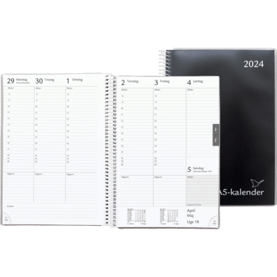 Forside Nyheder KONTORARTIKLER Kalendere SPIRAL A5-KALENDER 2026 SORT