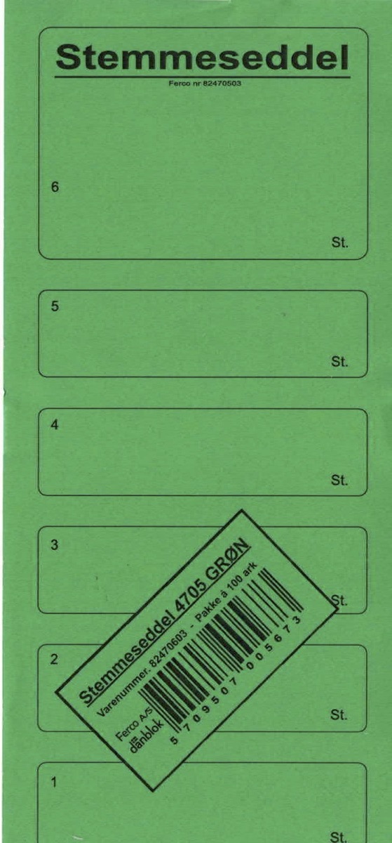 STEMMESEDLER 100 STK. -GRØN 95X210MM (1-6 PR. ARK)