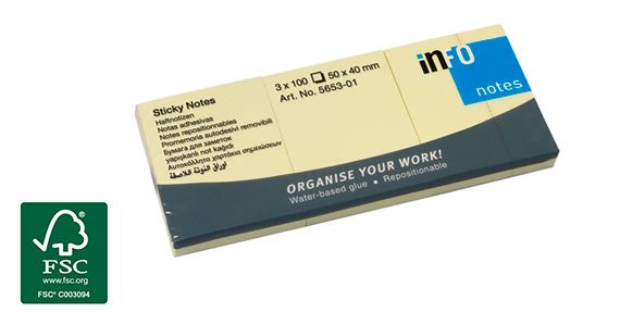 STICKY NOTES GULE (3 STK) 50 X 40 MM 100 BLADE