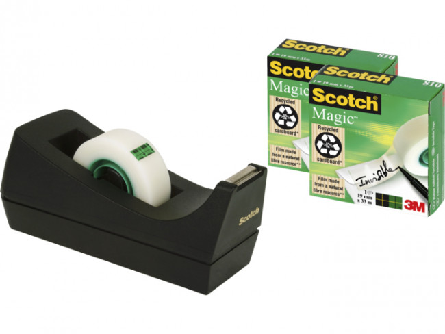 TAPEDISPENSER BORD C-38 SORT M/ 3 RL MAGIC TAPE