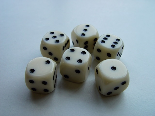 Forside Nyheder SPIL & LOTTERI Raflebæger & terninger TERNINGER 16mm – CREME (6 stk. i pose)