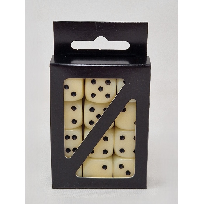 Forside Nyheder SPIL & LOTTERI Raflebæger & terninger TERNINGER 16mm – CREME (Æske á 12 stk.)