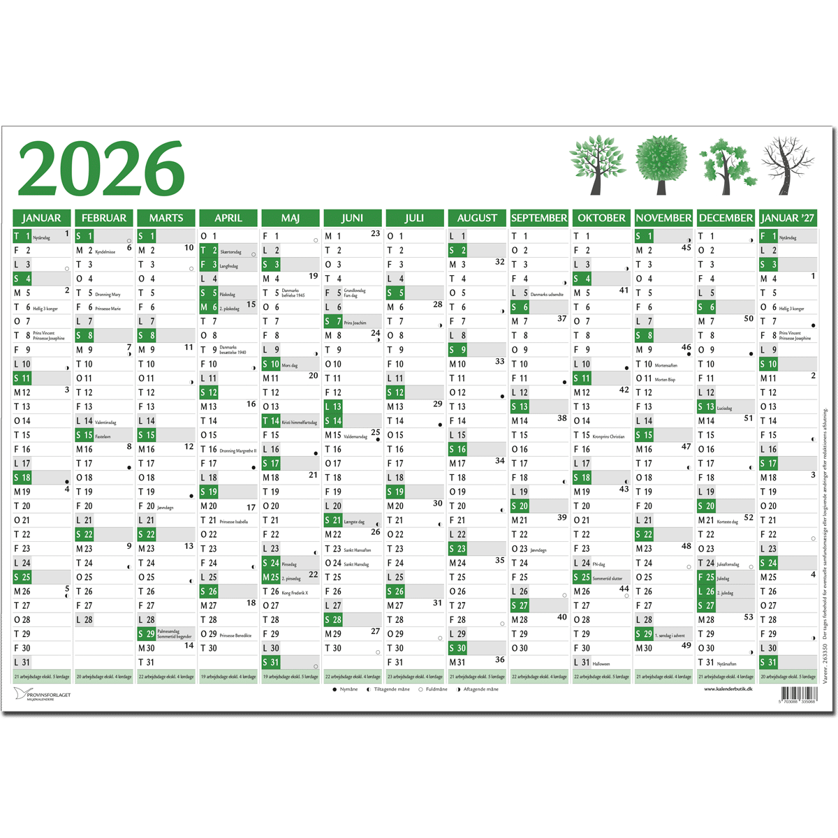 VÆGKALENDER A2 13 MÅNEDER GRØN 2026