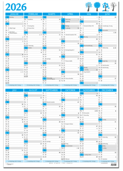 VÆGKALENDER KÆMPE 2026 -2x6 MDR - BLÅ 98X68,5CM 97,60 kr. inkl. moms