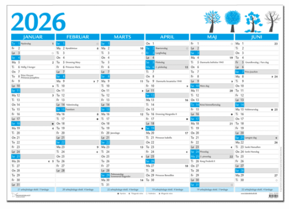 VÆGKALENDER KÆMPE 2026 -2x6 MDR - BLÅ 98X68,5CM