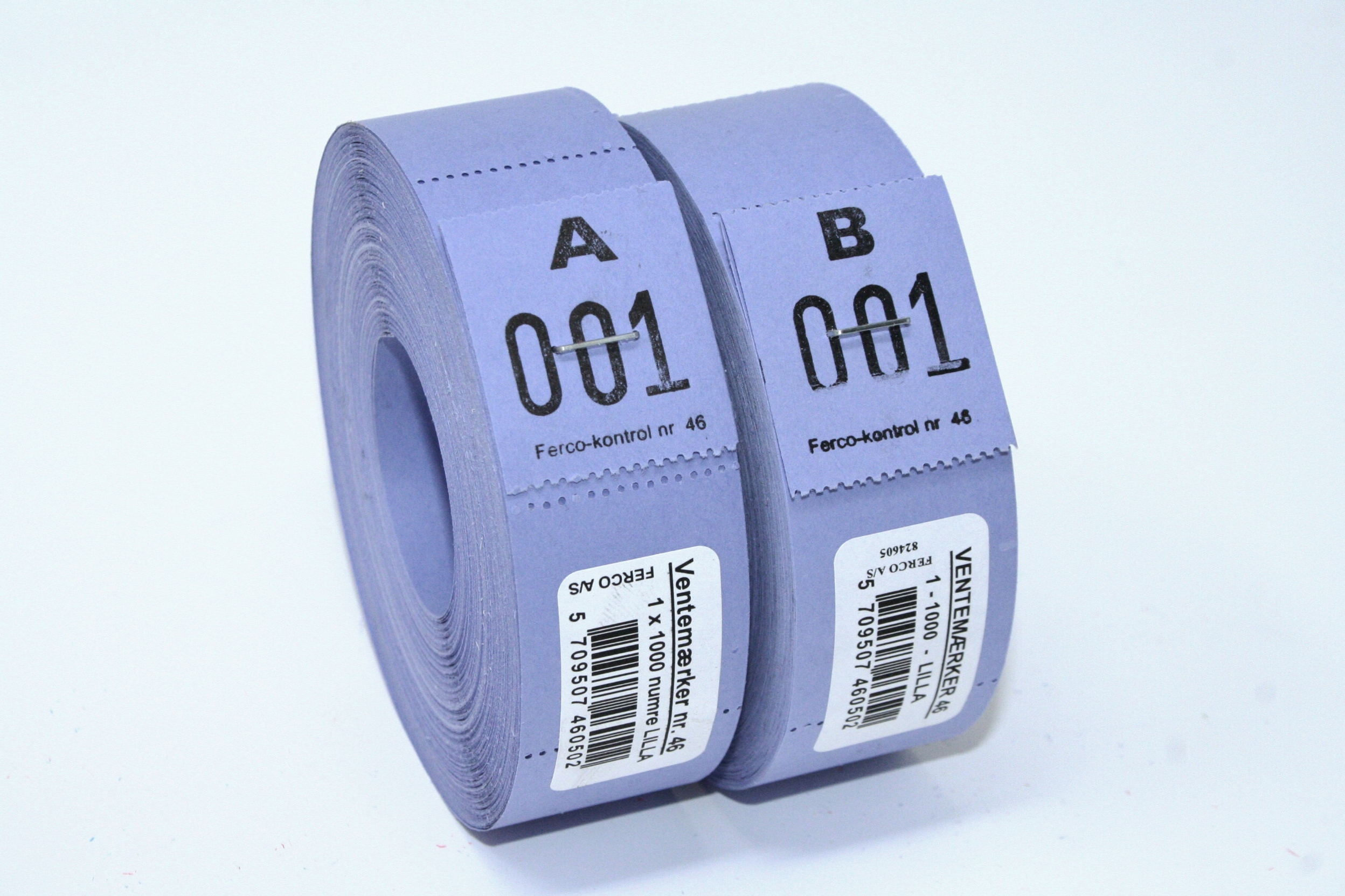 Forside Nyheder PAPIRVARER Nummerruller VENTEMÆRKER 46 – LILLA (1-1000)