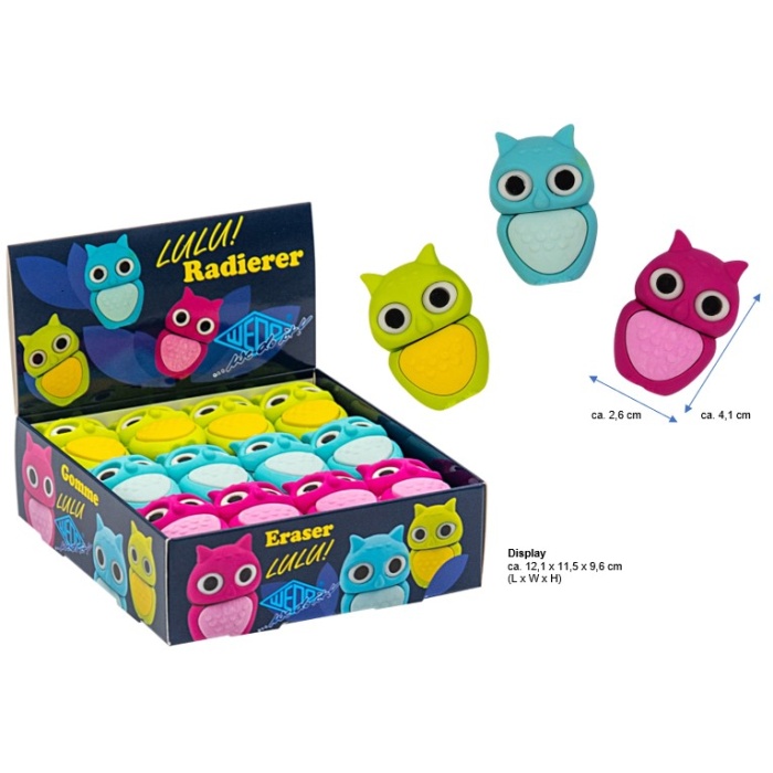 VISKELÆDER – UGLE ” LULU” – ASS. FARVER – 24 STK PR. DISPLAY